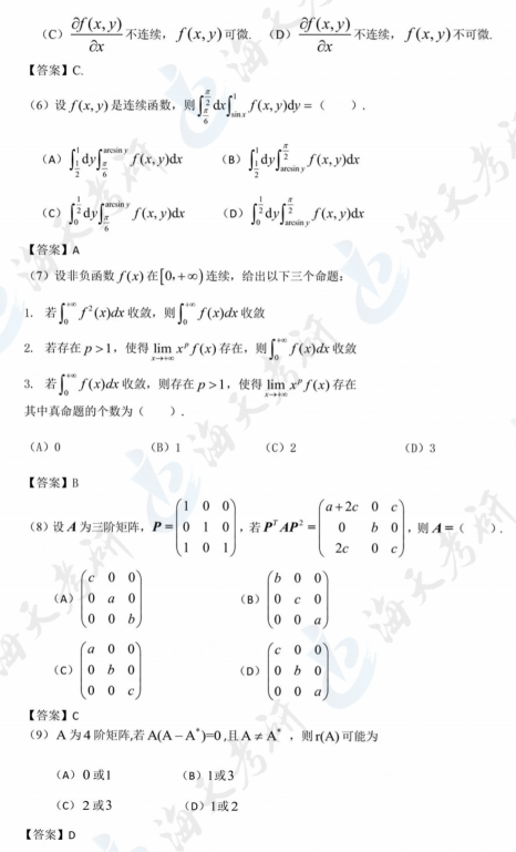 以上就是海天考研网为各位考生整理的2024考研数学二真题及解析汇总,仅限参考。持续为考研学子更新其他考研科目考研真题及答案解析,各位考生可以根据自身需要关注收藏,及时查看完整版2024考研真题及答案解析。